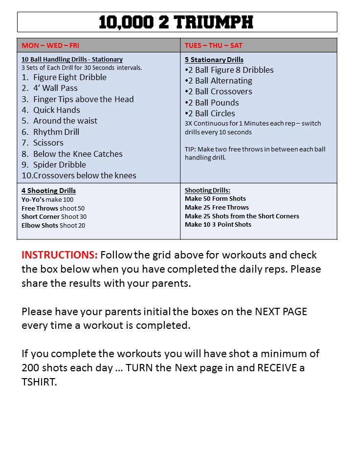 There is basically one rule - Be honest and dont cheat! You have to do this everyday no matter what. It is quick so players will need to plan their time as well. Parents sign their forms so they have some at home accountability. The images are below - Print and start.